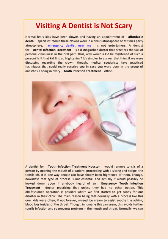 A dentist for Tooth Infection Treatment Houston would remove tonsils of a person by opening the mouth of a patient, proceeding with a slicing and scalpel the tonsils off. It is one-way people can have simply been frightened of them. Though, nowadays that type of process is not essential and actually it would possibly be looked down upon if anybody heard of an Emergency Tooth Infection Treatment doctor practicing that unless they had no other option. This old-fashioned operation is possibly where we first started to get candy for our disaster in their clinic. The main reason being that normally with a process like this one, kids were often, if not forever, agreed ice cream to assist soothe the aching, blood loss insides of the throat. Though, inhumane this can seem, this avoids further tonsils infection and so prevents problem in the mouth and throat. Normally, we can accept that as a tooth infection dentist is a specialist and they are avowed to search for the best interest of patient.